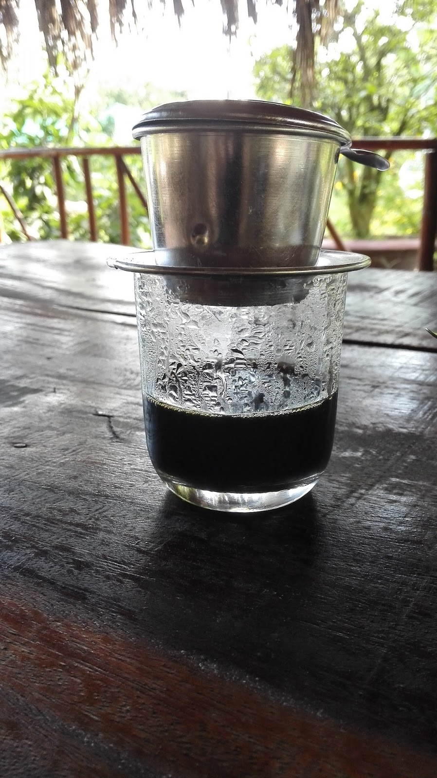 I order my breakfast, pork on rice and a traditional Vietnamese coffee. The owners of the resort are so adorable! The coffee is delicious, best coffee I have ever drunk. It is naturally sweet and very dark and has a strong vanilla like flavor. I like my coffee like I do my metal, BLACK. ;)